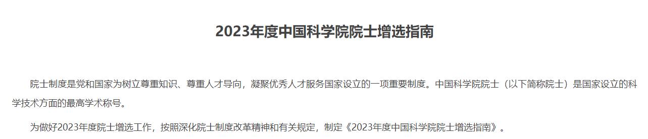 央视网消息:近日,中国科学院学部发布《2023年度中国科学院院士增选指南》。主要内容如下: