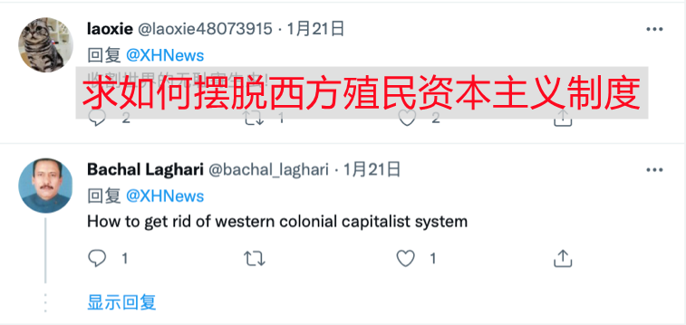还有海外网友发出了更深层次的反思。 网友帕沙尔·莱加里留言问:“求如何摆脱西方殖民资本主义制度?”