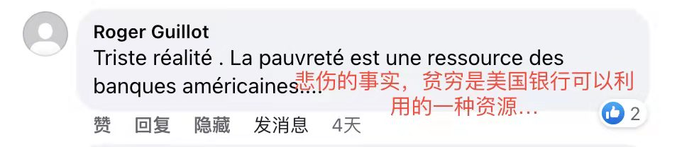 集体揭批美式金融霸权 新华社播发的多语种报道让更多海外网友看到美国金融霸权的真实面目和企图,这种为广大发展中国家发声的方式让他们颇为赞赏。 海外网友们纷纷表达了他们苦美国金融霸权久矣的心情。 法语脸书网友罗歇·吉约认为,这组报道里提到的,美国在发展中国家收割的案例是“悲伤的事实,贫穷是美国银行可以利用的一种资源”。